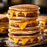Delicious homemade McGriddles crafted from fluffy pancakes, savory sausage, and creamy eggs, bringing warmth and nostalgia to your breakfast table.