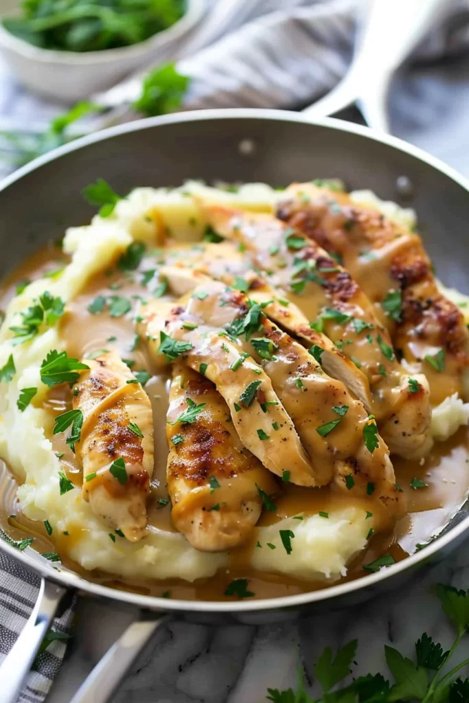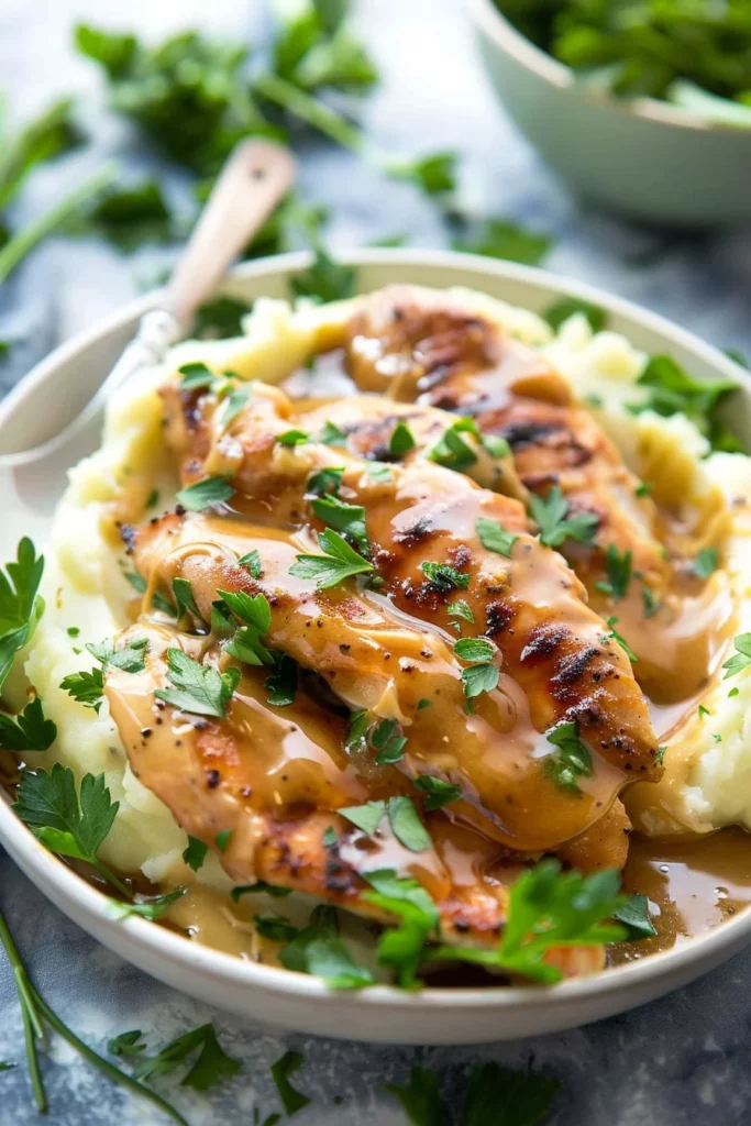 - Serve the chicken over mashed potatoes, sprinkle with chopped parsley, and pair with a simple salad.