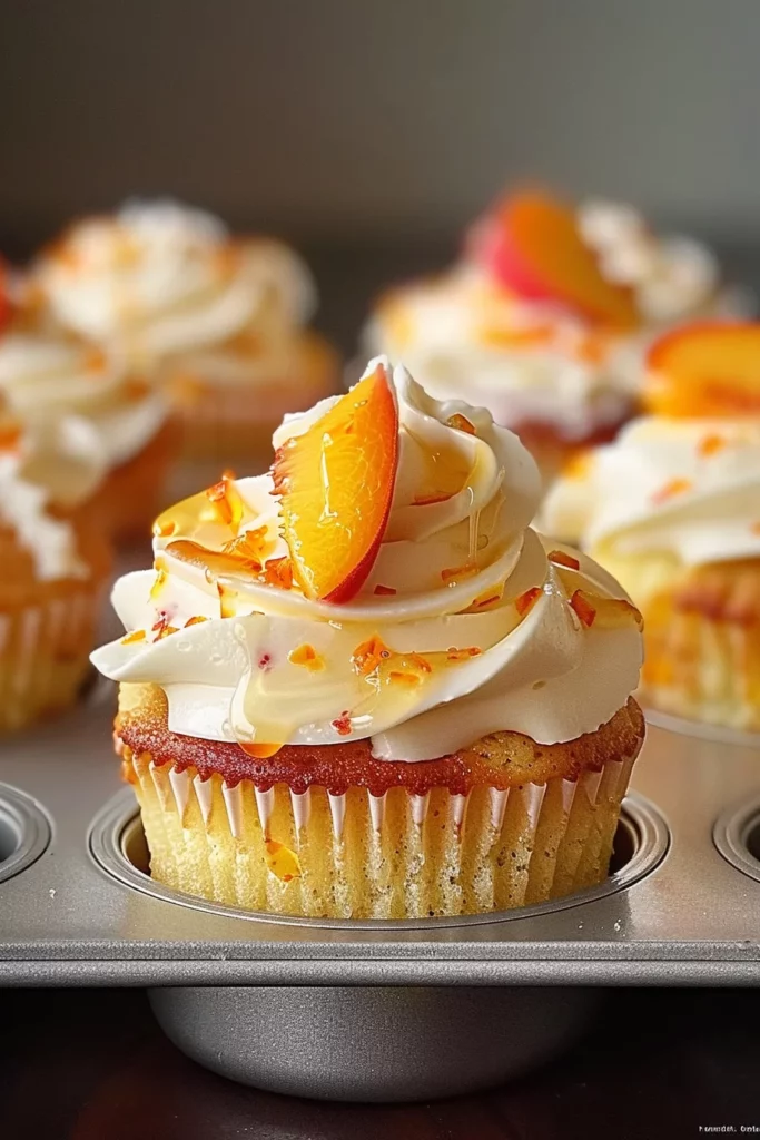 Perfecting your Honey Peach Cream Cheese Cupcakes involves attention to detail. For the frosting, blend softened cream cheese, powdered sugar, and milk until smooth and creamy. This mixture should be thick enough to hold its shape yet soft enough to spread easily.