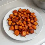 4. Roast for about 25 minutes or until tender and golden brown, stirring halfway through. This step encourages even cooking and ensures that every sweet potato piece develops that desirable caramelization.