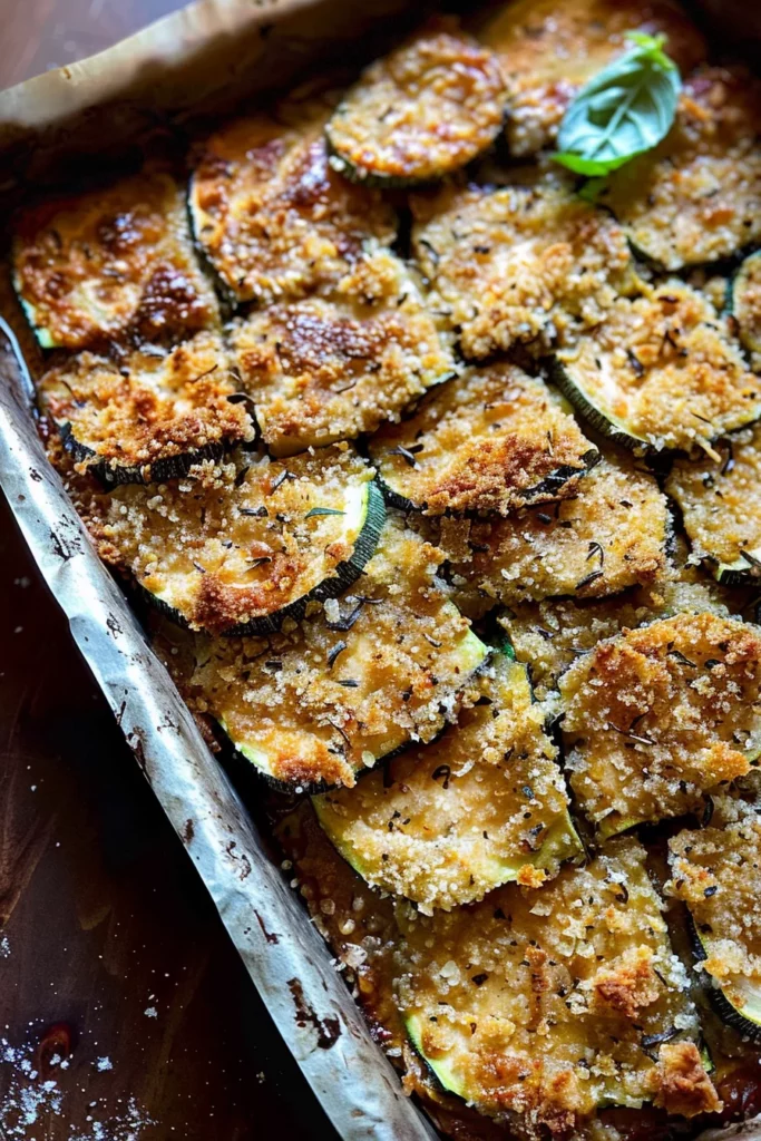 Before diving into the recipe, ensure you have all the ingredients ready. Fresh zucchini and sweet onion are essential for the best results. Begin by slicing the zucchini into rounds and the onion into thin slices. Preheat your oven to 350°F and line a 9×13″ metal baking dish with parchment paper, lightly coating it with olive oil spray for easy removal.