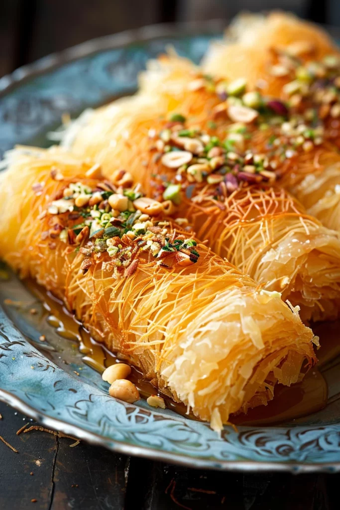 Keywords: kataifi pastry recipe, middle eastern dessert, shredded phyllo dough, sweet pastry, homemade dessert, crispy filo pastry