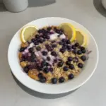 A cozy and flavorful breakfast featuring baked oats with lemon and blueberries, perfect for starting your day right.