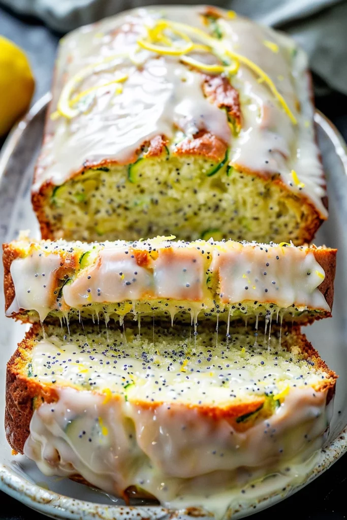 Presentation is key when serving Lemon Poppy Seed Zucchini Bread. Slice the loaf evenly and arrange it on a decorative platter. The glaze provides a shiny finish, making each piece visually appealing and inviting. This bread is perfect for any occasion, from breakfast gatherings to afternoon tea.