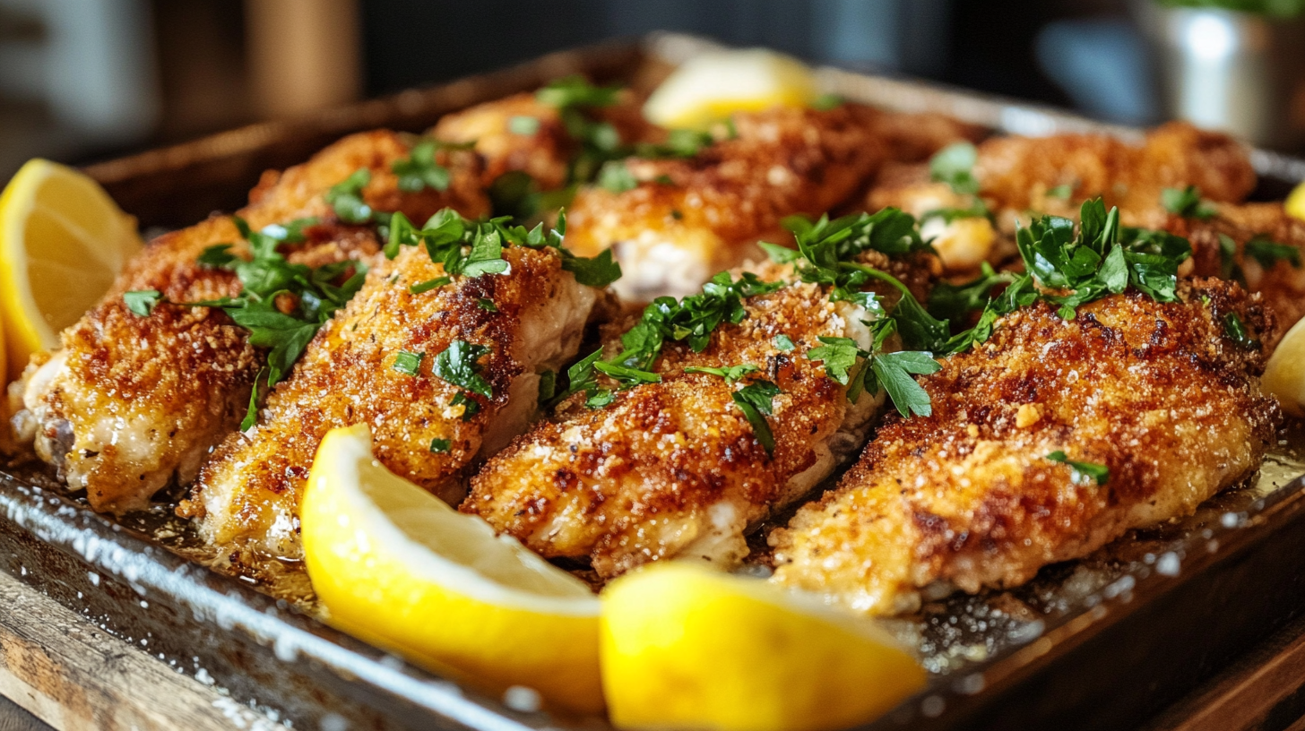 - Let chicken rest for 5-7 minutes before serving. Garnish with fresh parsley and serve with lemon wedges.