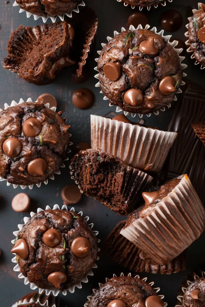Keywords: 1. Chocolate Zucchini Muffins, 2. Double Chocolate Muffins, 3. Moist Chocolate Muffins, 4. Zucchini Muffins Recipe, 5. Delicious Chocolate Muffins