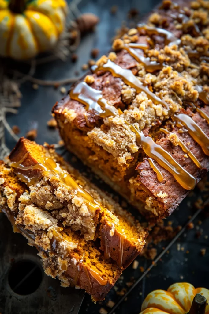 Indulge in the ultimate fall treat with our recipe for moist pumpkin bread topped with a crunchy streusel and drizzled with a sweet maple glaze. Learn how to bake it now!