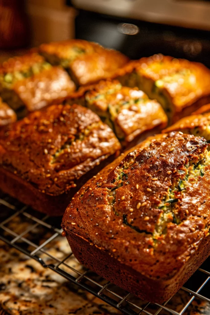 Use a table knife to gently separate the edges from the pan before flipping the loaves onto the wire rack. Let them cool completely before slicing. For more delicious variations, check out our Lemon Zucchini Bread or try the Golden Chocolate Chip Zucchini Bread for a sweet twist.