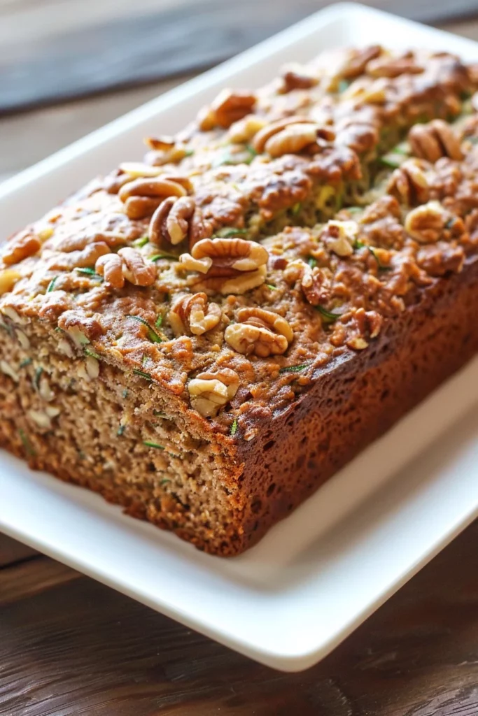 The technique for making Mom’s Zucchini Bread is straightforward but requires attention to detail. After blending your wet and dry ingredients, gently fold in the grated zucchini and chopped walnuts. This step is crucial for even distribution, ensuring each bite has the perfect balance of flavor and texture.