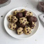 - Coat the Dough Bites: Dip each cookie dough ball into the melted chocolate and place on a lined baking sheet.