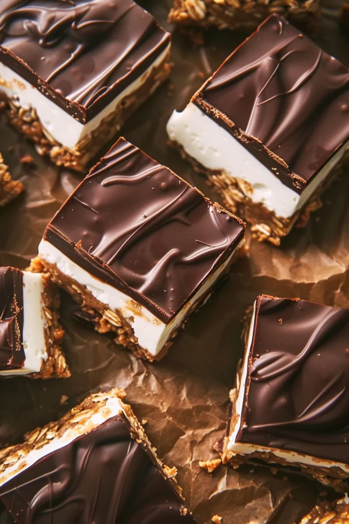For optimal results, chill the chocolate layer in the refrigerator until firm. This step ensures that the bars hold their shape when cut. When preparing the Greek yogurt filling, mix it with powdered sugar until smooth and creamy. Spread this over the chocolate layer for a refreshing contrast.