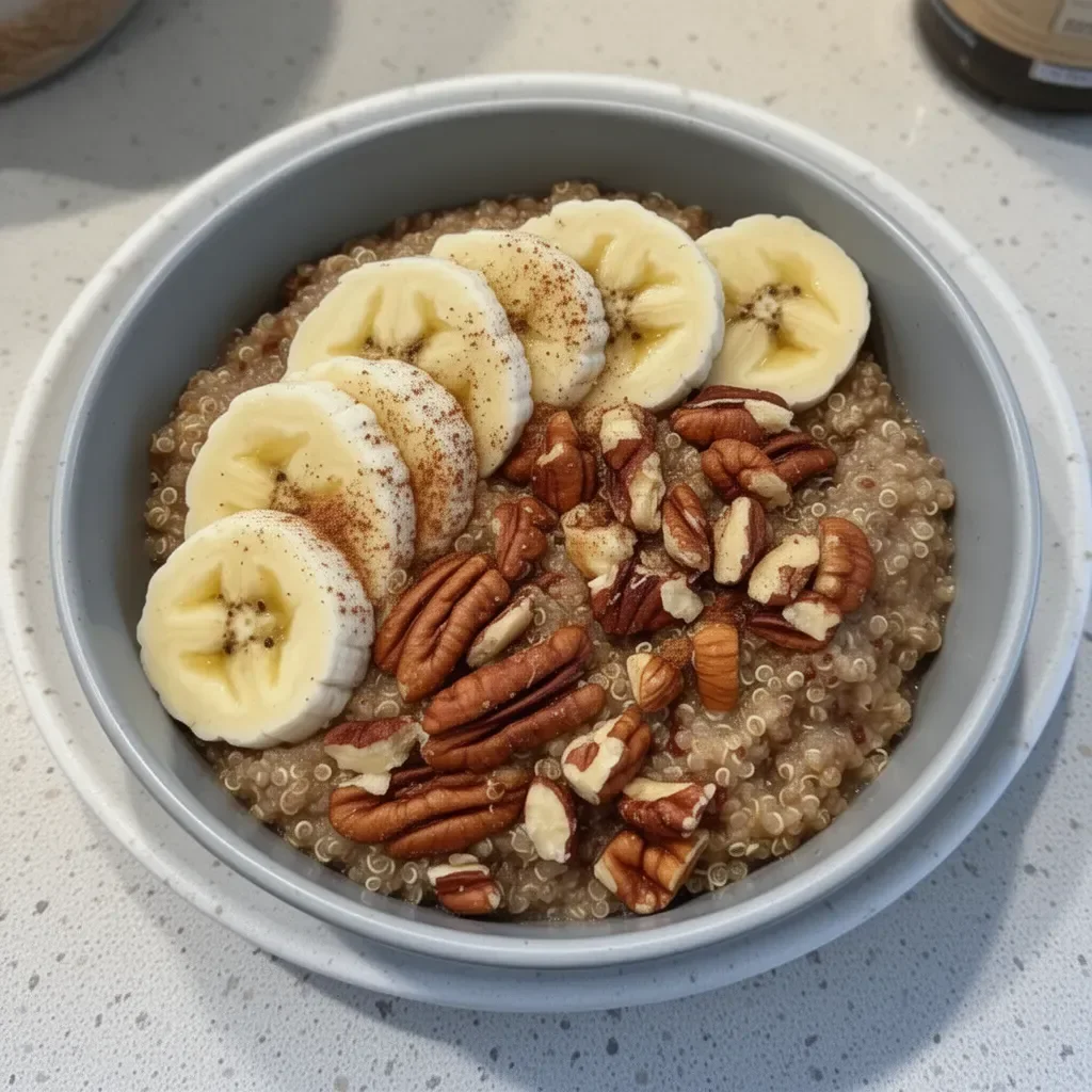 A creamy and rich quinoa oatmeal dish packed with nutritious ingredients for a delightful breakfast.