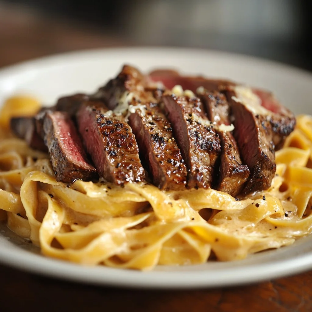 A comforting and indulgent one-pan dish featuring tender steak, creamy sauce, and pasta that comes together effortlessly.