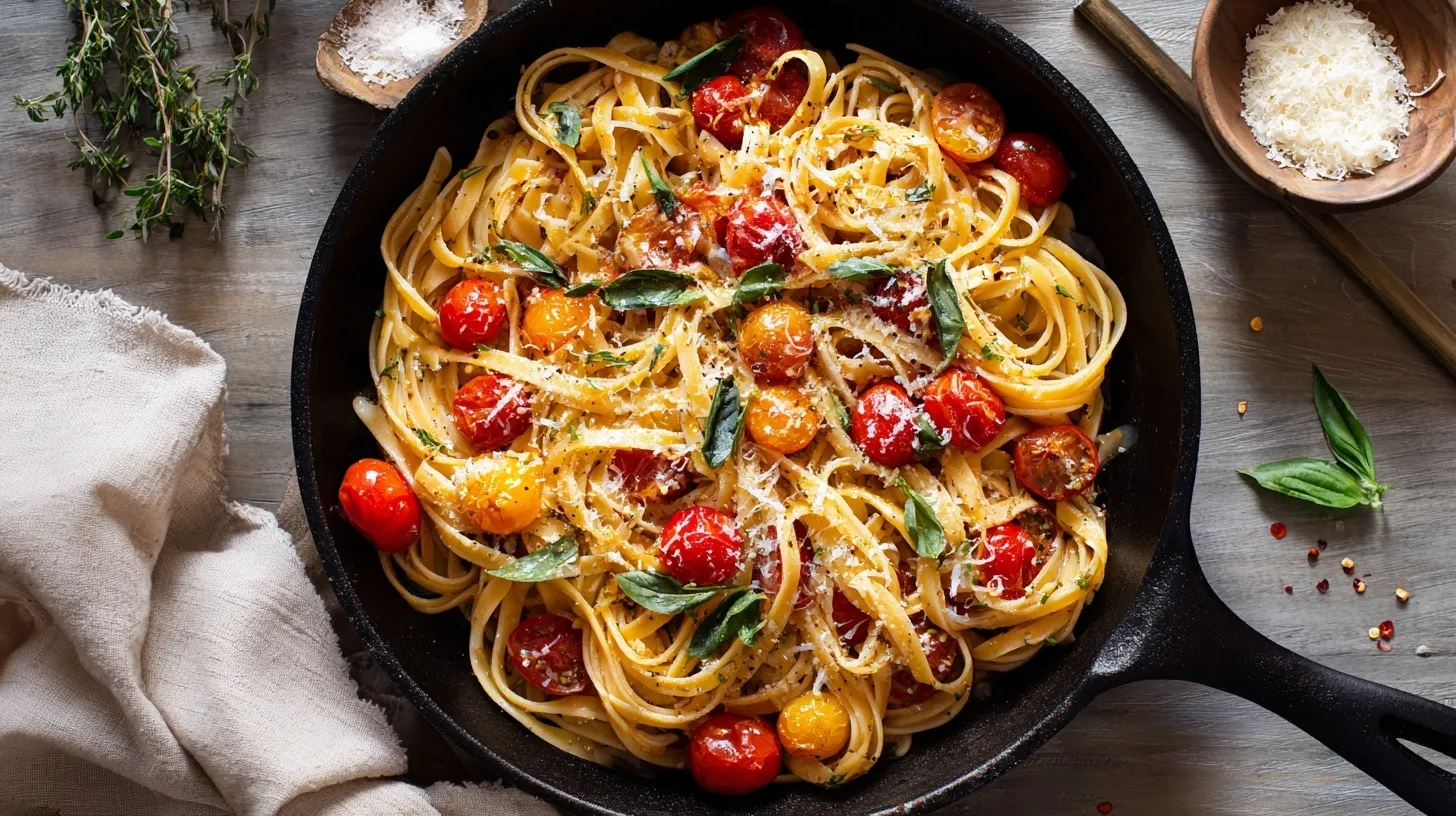 Remove skillet from heat, discard basil stems, and garnish with torn basil leaves. Serve with grated Parmesan cheese. Martha’s secret: A final drizzle of high-quality olive oil just before serving elevates the dish’s flavor profile by 30%.