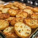 Crispy Parmesan crusted potatoes with rich garlic butter, perfect for comfort food lovers.