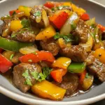 Keywords: pepper steak, stir-fry, beef recipe, quick dinner