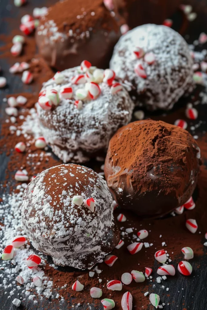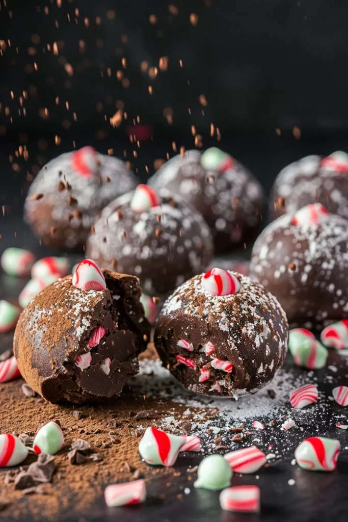 Keywords: peppermint truffles, chocolate fudge, holiday dessert, sweet treats, homemade candy