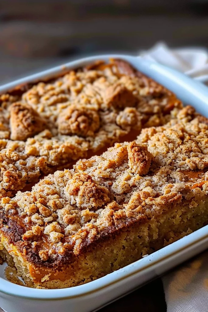 Before you start, preheat your oven to 350°F (175°C) and prepare your baking dish by lightly greasing it. This step ensures that your Pumpkin Crumb Cake releases easily from the dish once it’s baked.