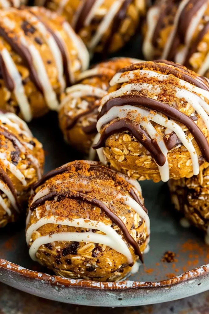 Keywords: pumpkin energy bites, peanut butter balls, healthy snack, chocolate drizzle, freezer friendly, no bake recipe