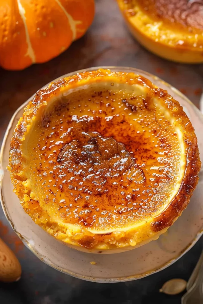 Keywords: pumpkin custard, creamy dessert, baked pumpkin, holiday treat, vanilla cinnamon, brulee topping