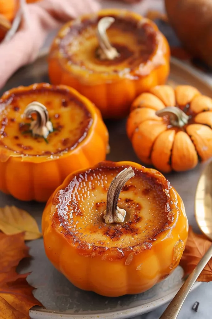 When serving Pumpkin Spice Creme Brulee, presentation is key. The pumpkin shells naturally add a rustic charm, perfect for autumn-themed gatherings. Place each pumpkin on a small plate with a spoon, allowing guests to enjoy the dessert straight from its edible bowl.