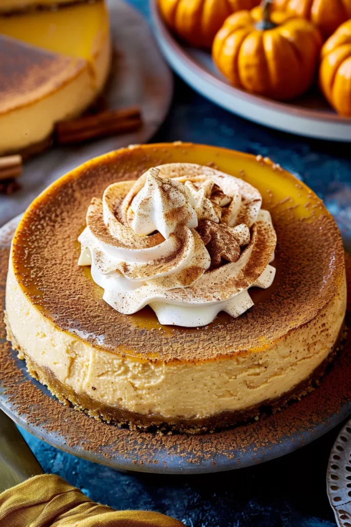 Keywords: pumpkin cheesecake, spiced latte, creamy dessert, homemade dessert, fall dessert, pumpkin recipe