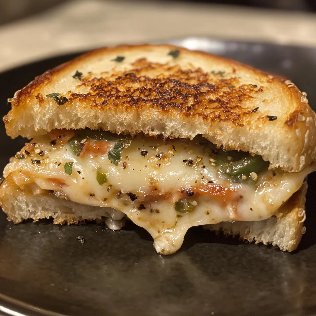A delightful twist on the classic grilled cheese, combining creamy melted cheese with smoky roasted jalapenos for an explosion of flavor.
