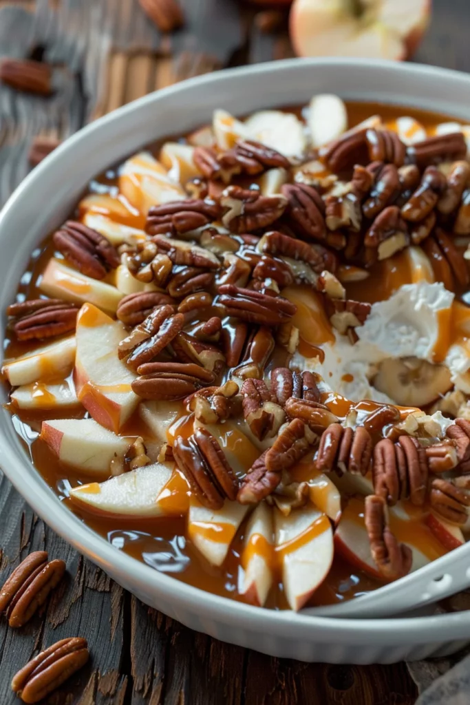 The presentation of this dip is just as important as its preparation. Use a clear serving dish to showcase the beautiful layers of cream cheese, caramel, apples, and pecans. This not only makes the dip visually appealing but also entices guests to dig in and enjoy.
