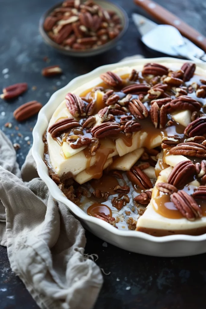 The Salted Caramel Apple Cheesecake Dip pairs beautifully with a variety of snacks. For a savory contrast, try pairing it with salty pretzels. If you’re a fan of rich, creamy desserts, you might also enjoy this Pecan Caramel Cheesecake.