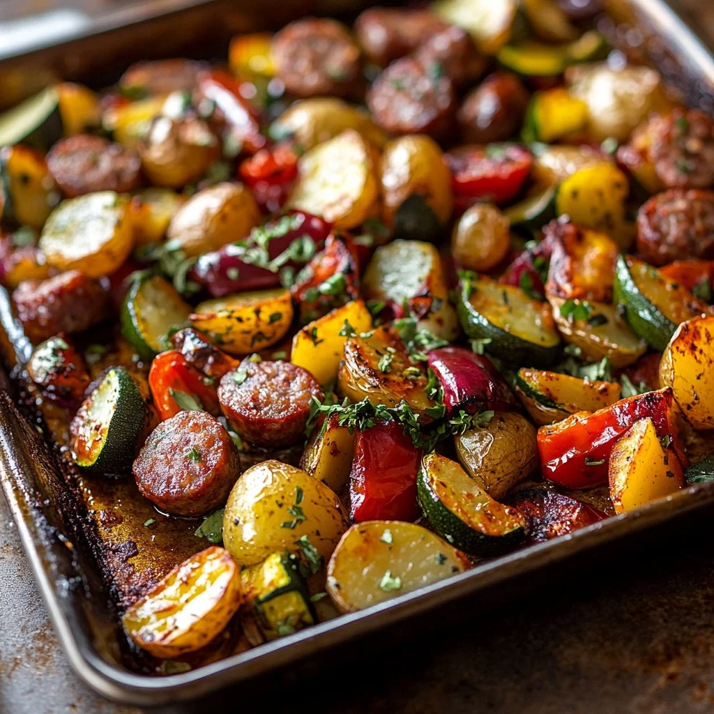A delightful and flexible sheet pan meal featuring Italian sausage and fresh vegetables that makes weeknight dinners easy and satisfying.
