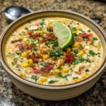 A comforting and vibrant soup made with roasted corn, seasoned chicken, and spices, perfect for a cozy dinner or gathering.