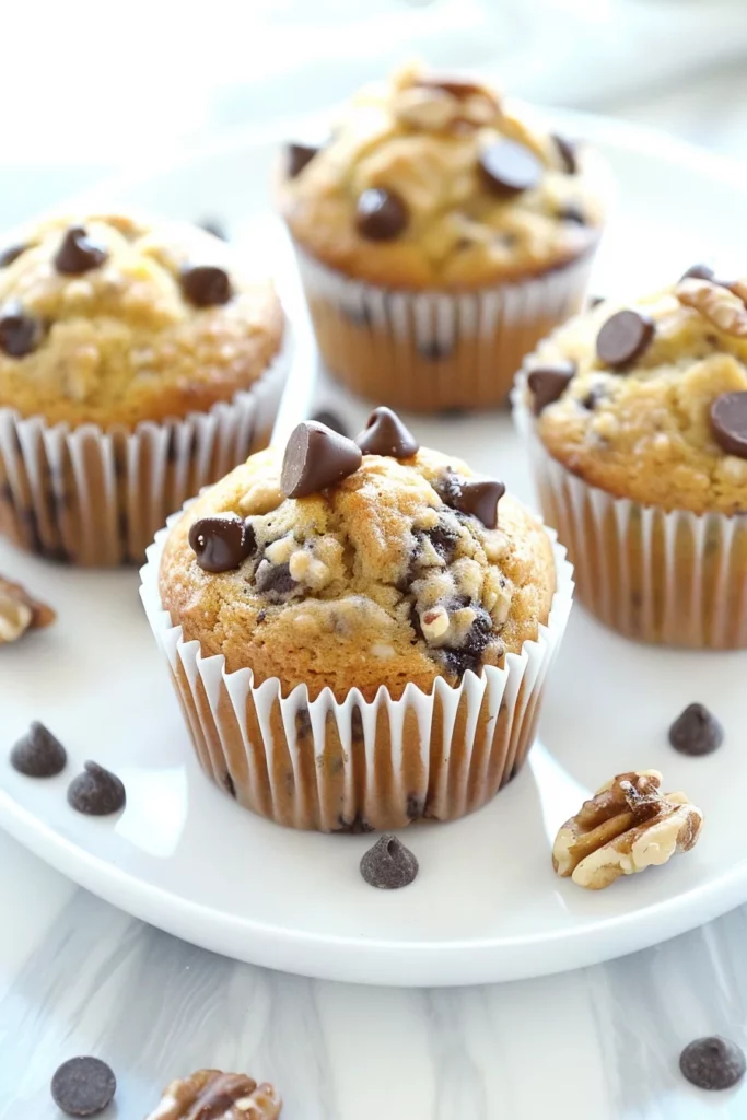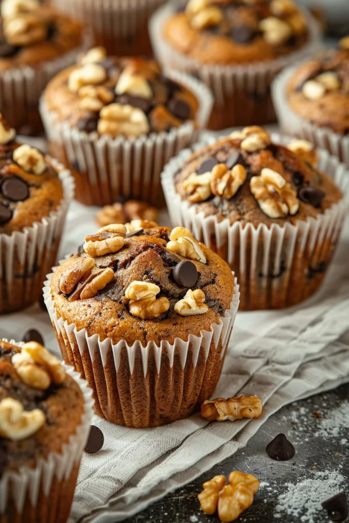 Once the batter is ready, gently fold in the chocolate chips and chopped walnuts. Folding involves a gentle turning motion with a spatula, ensuring these add-ins are evenly distributed without deflating the batter. This technique keeps the muffins light and airy, with delightful pockets of chocolate and nuts in every bite.