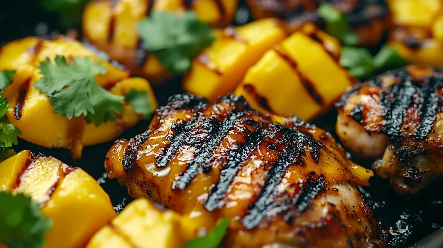 Juicy grilled chicken thighs with a sweet and spicy mango glaze – perfect for summer cookouts!