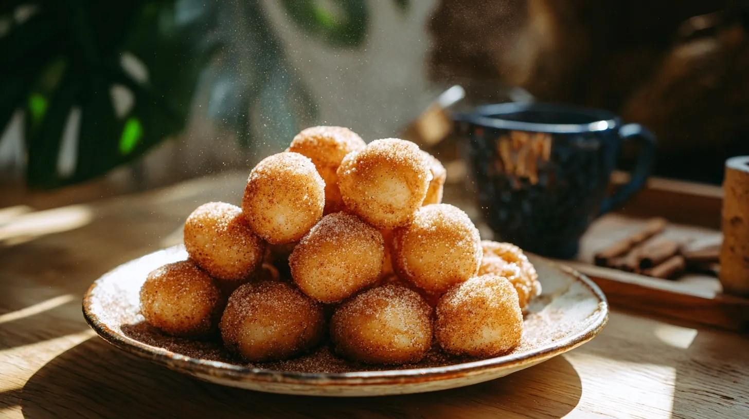 Reduced Sugar Coating: Use a mixture of granulated monk fruit sweetener and cinnamon for the coating to cut down on refined sugar while maintaining sweetness.