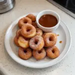 - Roll the warm donut bites in the cinnamon-sugar mixture.