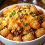 A comforting dish made with seasoned ground beef, creamy mushroom soup, and crispy tater tots, perfect for busy weeknights.