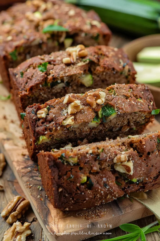 Present your zucchini bread sliced and on a platter for a welcoming display. Its rich aroma and golden crust make it an inviting centerpiece. Pair it with a cup of coffee or tea for a delightful snack or breakfast option.