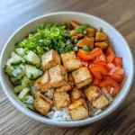 Fresh, mixed vegetables bring vibrant color and a variety of nutrients. Bell peppers, carrots, and broccoli create a rainbow of flavors. Together, they contribute a delightful crunch that contrasts beautifully with the soft tofu and rice. The simplicity of this dish allows each ingredient to shine, making it truly irresistible.