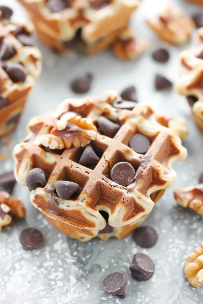 The key to perfect Waffle Muffin Bars lies in the folding technique. Gently fold in the mini chocolate chips and chopped walnuts to ensure even distribution throughout the batter. This step adds texture and flavor, making each bite a delightful experience.