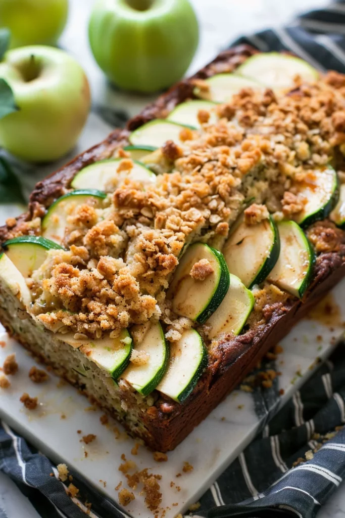 Keywords: apple cinnamon, zucchini bread, moist loaf, sweet bread, crumbly topping, easy baking