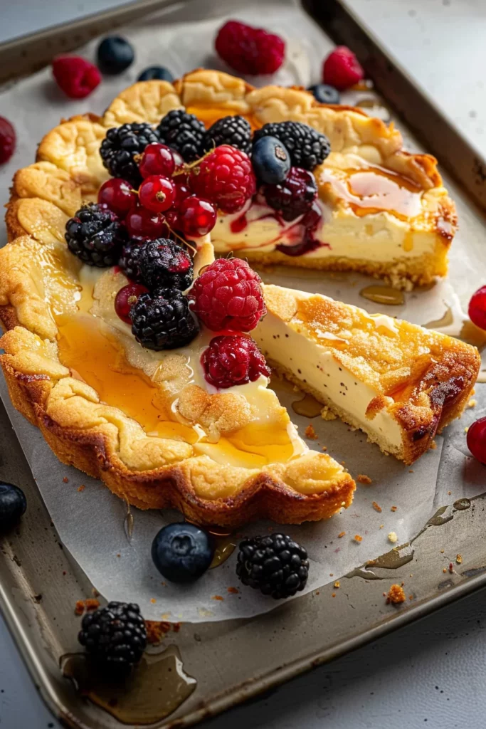 - Allow the cake to cool, then serve with fresh berries, maple syrup, or honey on top. Enjoy!