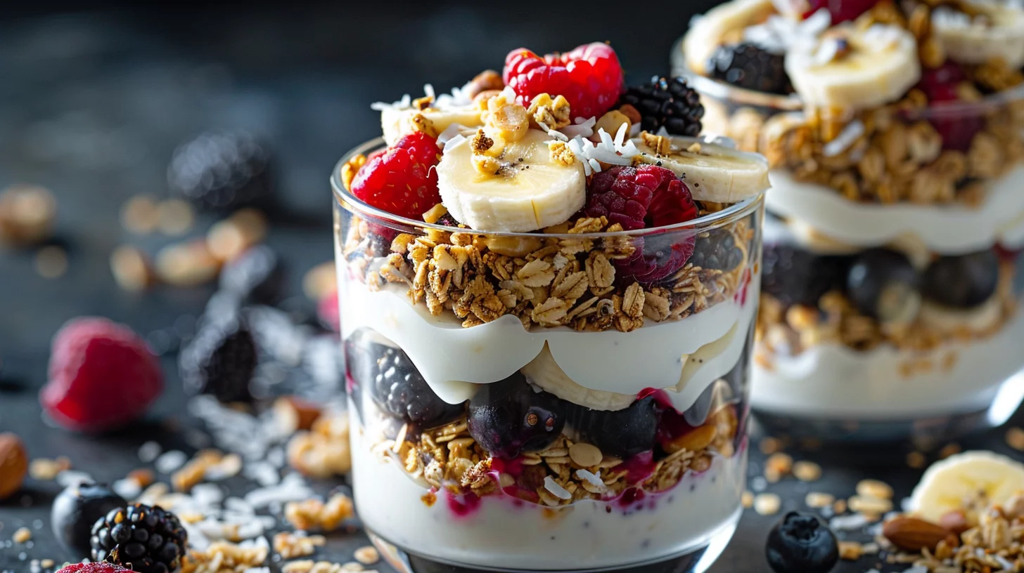 Yogurt parfaits with granola and fruit celebrate simplicity and flavor, transforming humble ingredients into a culinary delight. Their versatility makes them an ideal choice for breakfast, brunch, or snack, offering endless possibilities for customization and creativity.